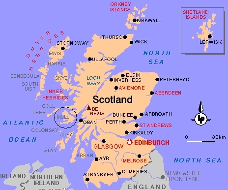 Von Edinburgh ging es über Glasgow mit dem Zug nach Oban und dann per Fähre nach Craignure auf Mull. Wir hatten das schönste Zimmer in einem urigen, gemütlichen Pub. Von Craignure aus erkundeten wir für 3 Tage den Süden der Insel, bevor wir dann weiterzogen Richtung Nord-Ostküste ins Glenforsa Hotel für weitere 3 Nächte. Das Hotel ist ganz aus Holz gebaut mit super Blick auf den Sound of Mull. Uns hat´s gefallen! Von dort haben wir eine schöne Wanderung durch´s Glenforsa Tal mit Blick auf einen "Graham", das ist ein Berg zwischen 2.000 und 2.499 Fuß hoch. Ein Teil ging quer über´s Moor und ich war immer total begeistert, wenn das Moor in meine Stiefel lief - die Masse sah aus, roch und fühlte sich an, als ob ein Riese kräftig Durchfall hatte :-(